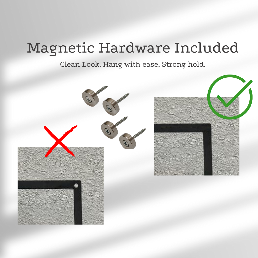 Our metal signs come with magnetic hardware included, allowing you to mount them easily using in the wall. The magnetic hardware keeps your sign secure while giving it a clean, modern, drill-free look.